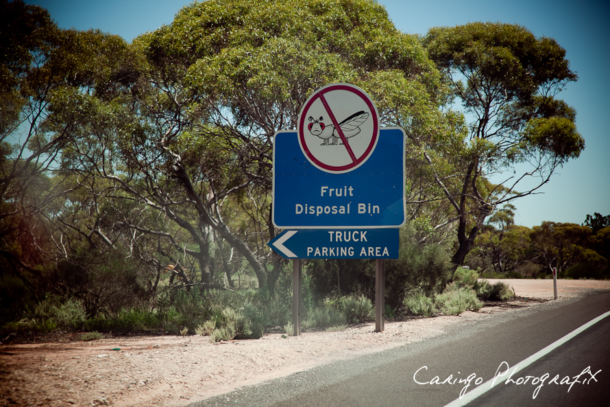 Repeating nature all the way to Mildura, flooded fields, detours and a funny sign which pretty much says: “through all your fruits away because we don’t like your fruit flies”. We could not believe that. Mildura is one of the biggest fruit growing cities in Victoria and in a radius of 20km around the city you are not allowed to have fruits with you or bring into the city respectively. No further words needed ;-)